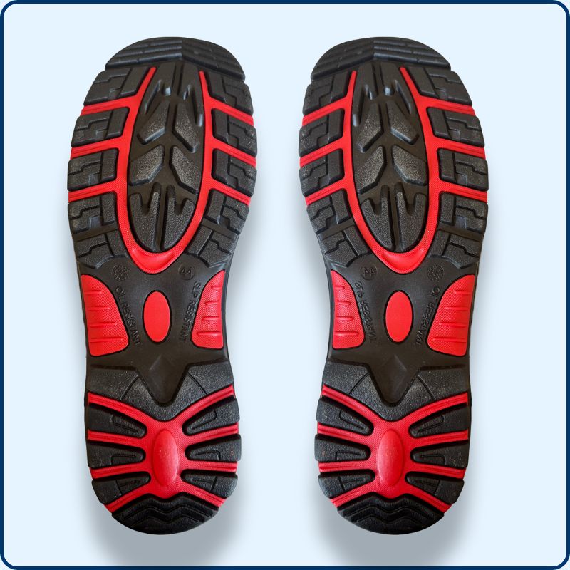 - Semelle : Bi-matière caoutchouc + PU (polyuréthane), antidérapante, résistante à la chaleur, à l’huile, aux acides et à l’abrasion.