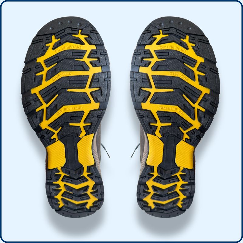 - Semelle anti-perforation : Plaque en acier, empêche la pénétration d’objets tranchants (clous, débris, verre).